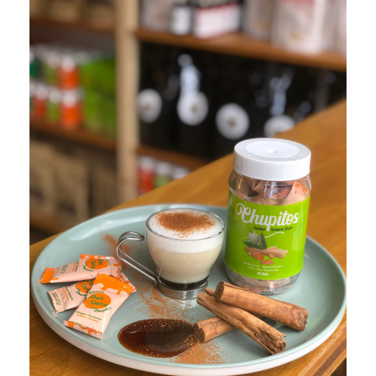 El Chupito Miel de Caña con Dorada de Cúrcuma es una mezcla deliciosa y nutritiva que combina la dulzura natural de la miel de caña con las propiedades antioxidantes de la cúrcuma, los beneficios del omega-3 de las semillas de chía y la pimienta negra. Ideal para veganos y para enriquecer una variedad de recetas culinarias.