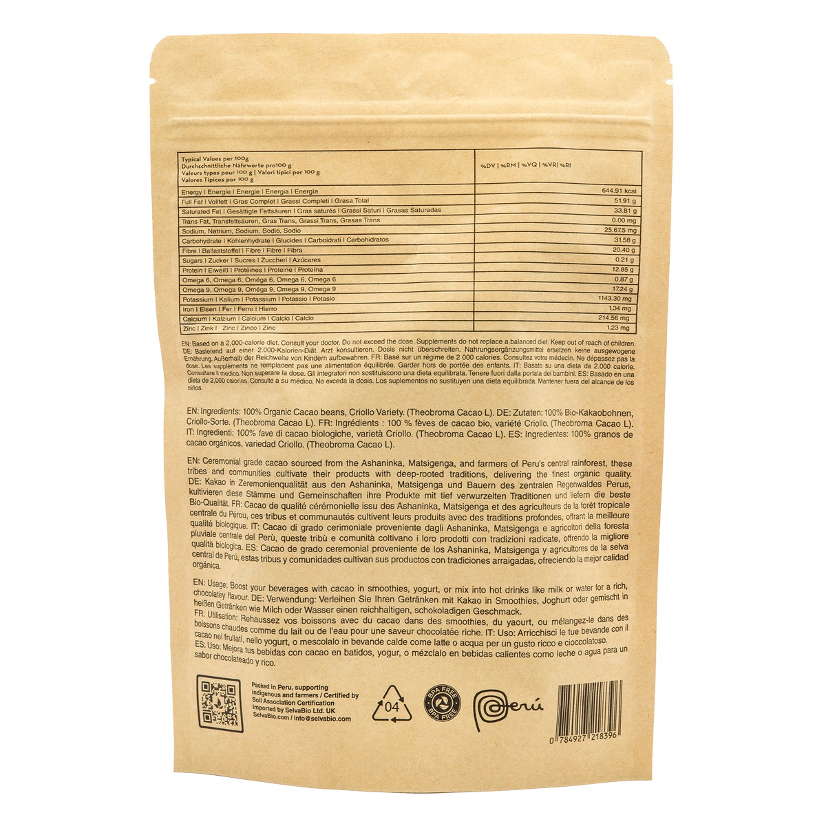 Cacao Ceremonial Orgánico, 500g, de la Tribu Ashaninka en Perú
