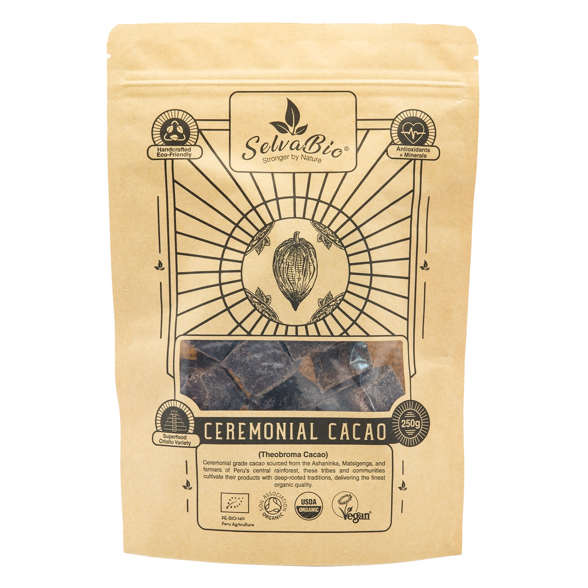 Exclusivamente original de nuestros bosques amazónicos de América del Sur, nuestro Cacao Ceremonial proviene directamente de la tribu Ashaninka en Perú, una tribu que se enfoca en cultivar su cacao con los más altos estándares orgánicos que involucran tradición, cultura y calidad.