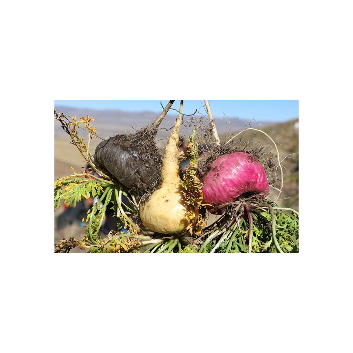 Our maca is sourced from the pristine highlands of Peru, specifically the Junin plateau, where it thrives at altitudes between 3,800 to 4,400 meters above sea level. Local farmers, adhering to time-honored methods, harvest the roots and sun-dry them for three months to maximize their sweetness and nutritional potency.