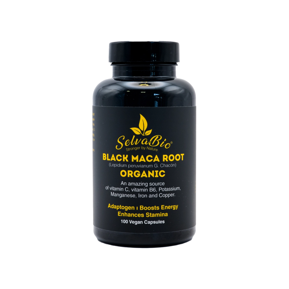 Discover the natural strength and convenience of SelvaBio's organic Black Maca Root Capsules, crafted for those with a busy lifestyle. Made from the scarce black maca roots, these capsules represent a small yet highly potent portion of the annual harvest, renowned for enhancing energy, mental clarity, and hormonal balance.